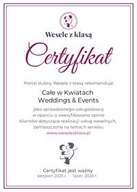 Certyfikat od Wesele z Klasą to znak, że nasza praca jest doceniana przez branżę. Dołącz do grona zadowolonych par młodych.